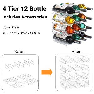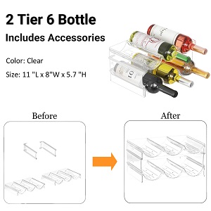 - Quality Assurance: Customer satisfaction & product quality are our priorities. Should you have any questions, please feel free to contact us. We will give you a satisfactory reply within 24 hours.STACKABLE: This bottle rack can be stacked to help increase the vertical storage space of kitchen countertops,tables, pantries, cupboards,dining room,fridge or freezers,Just according to your need of space requirements and make the bottle rack stacked or placed horizontally side by side then can create an incredibly orderly space
