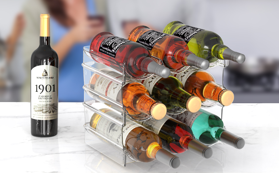 - Space Saving & Protection: Each rack holds up to 3 wine/bottled beverages, It features a stackable design and the stable structure prevents bottles from shaking, tilting, or falling over.